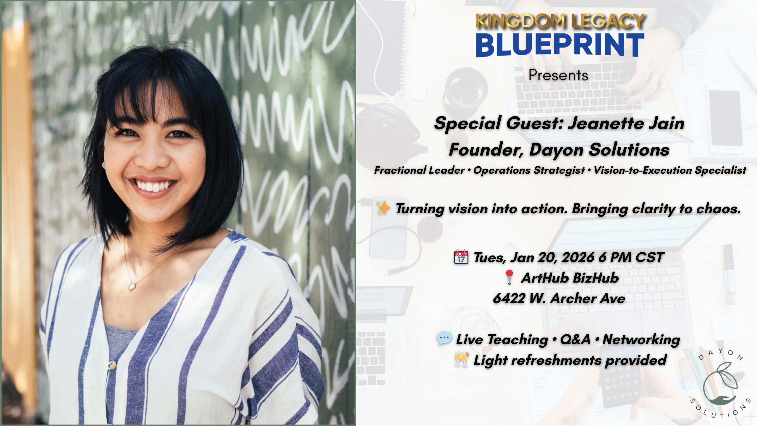 We’re bringing in Jeanette Jain — a seasoned operations strategist, fractional leader, and founder of Dayon Solutions, with over 10 years of experience helping business owners turn vision into clear, executable action.